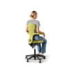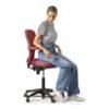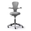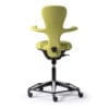 The M-free high chair offers the ability to work both seated and standing thanks to its unique design, telescopic height gas spring, and special fabric and faux leather combination.