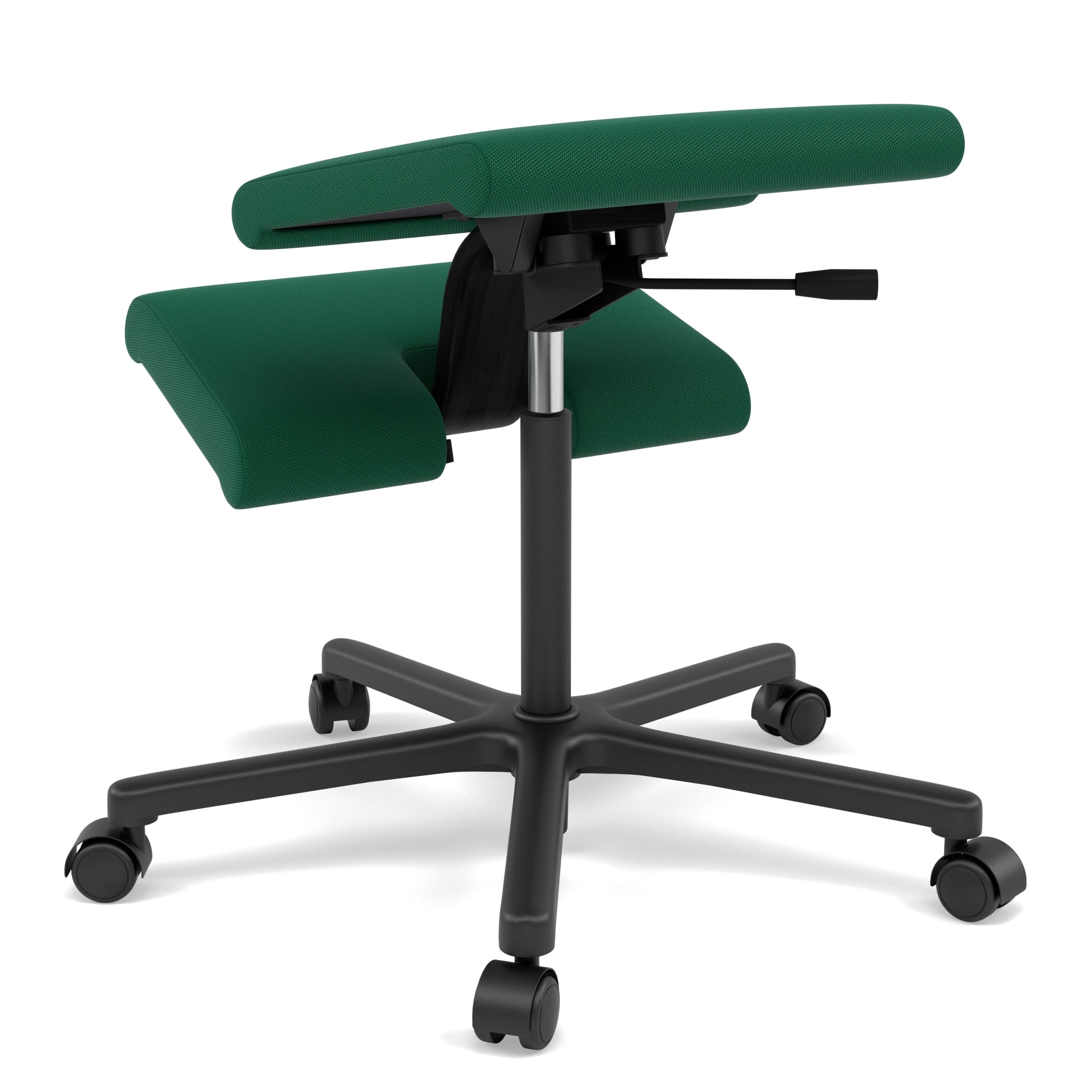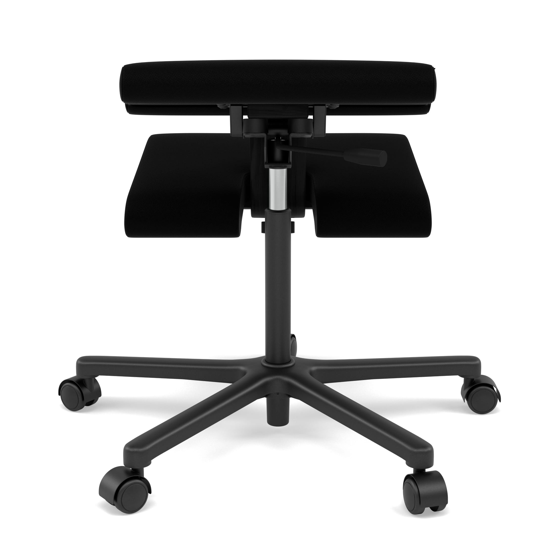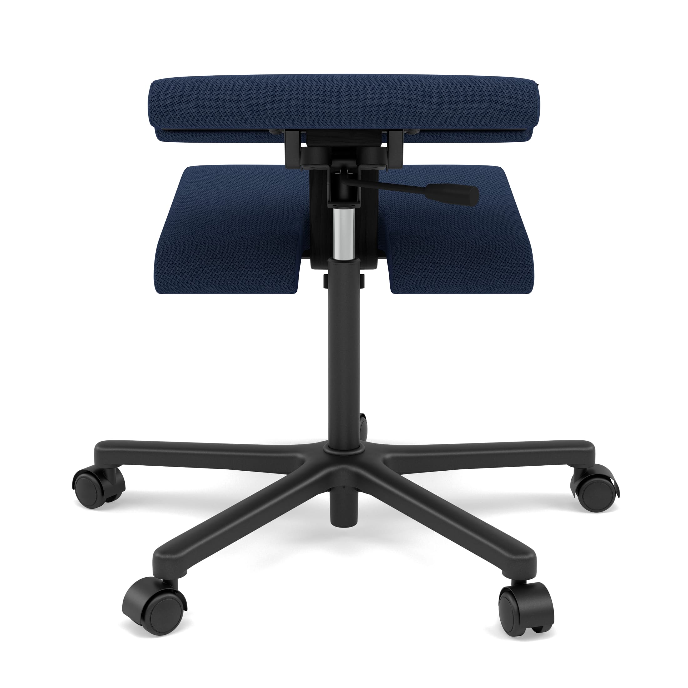 L’assise inclinée, montée sur amortisseurs en caoutchouc, et le coussin pour tibias permettent une posture avec un angle d’assise ouvert.