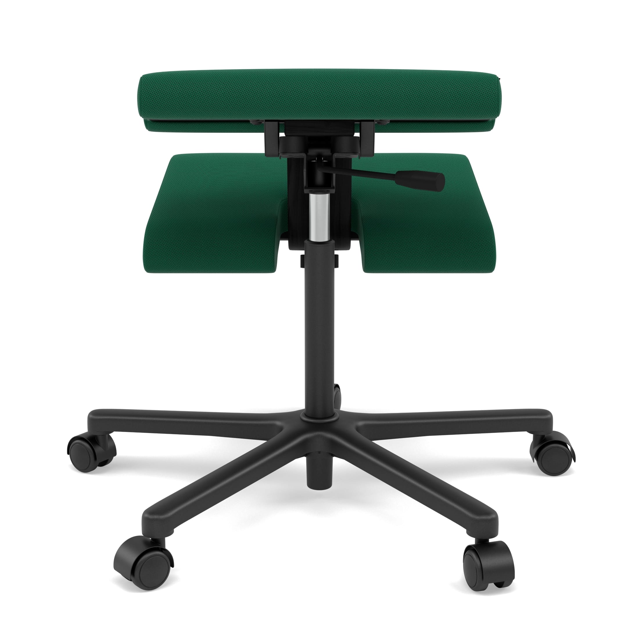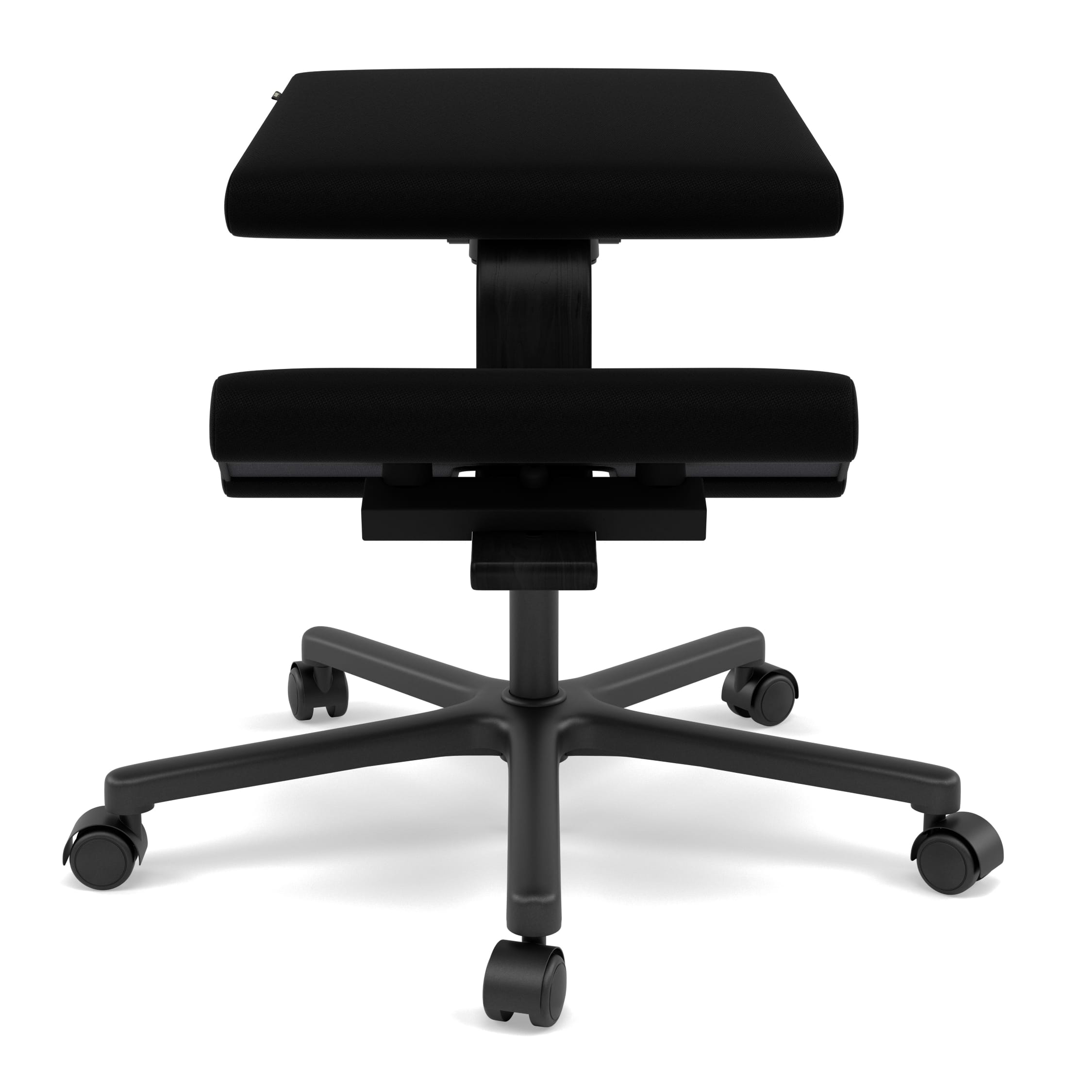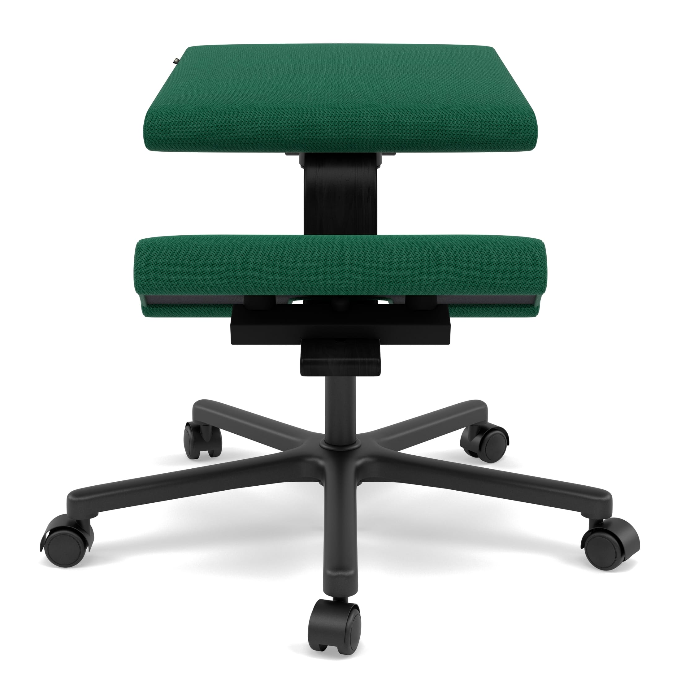 L’assise inclinée, montée sur amortisseurs en caoutchouc, et le coussin pour tibias permettent une posture avec un angle d’assise ouvert.