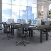 Der Doppelarbeitsplatz bietet dank der beiden verbundenen Tischuntergestelle eine maximale Stabilität. Die Platzierung der Tische ist jedoch kinderleicht, da der Abstand der Tischplatten, der Winkel und die Ausrichtung gegeben sind.