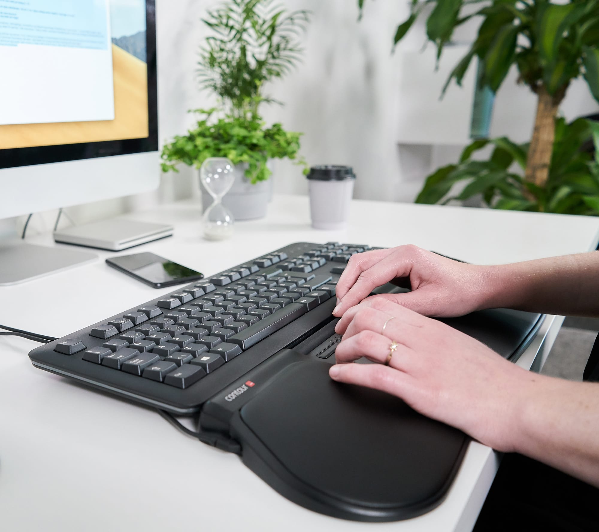 Durch eine natürliche Sitzposition, bei der Ihre Hände vor Ihrem Körper platziert werden, entlasten Sie Finger, Nacken und Schultern. Intelligente Funktionen wie Kopieren/Einfügen und der Doppelklick erleichtern Ihnen die Arbeit. Passen Sie auch den Klickwiderstand und die Cursor-Geschwindigkeit nach Ihren Vorlieben an, um so Ihr optimales Arbeitswerkzeug zu gestalten. Die Materialien der RollerMouse Pro3 wurden auf recyceltes Aluminium und PCR-Kunststoff optimiert. Zusätzlich ist sie nun mit einer antibakteriellen Handgelenkauflage aus veganem Leder und Memory- Schaum-Polsterung ausgestattet.